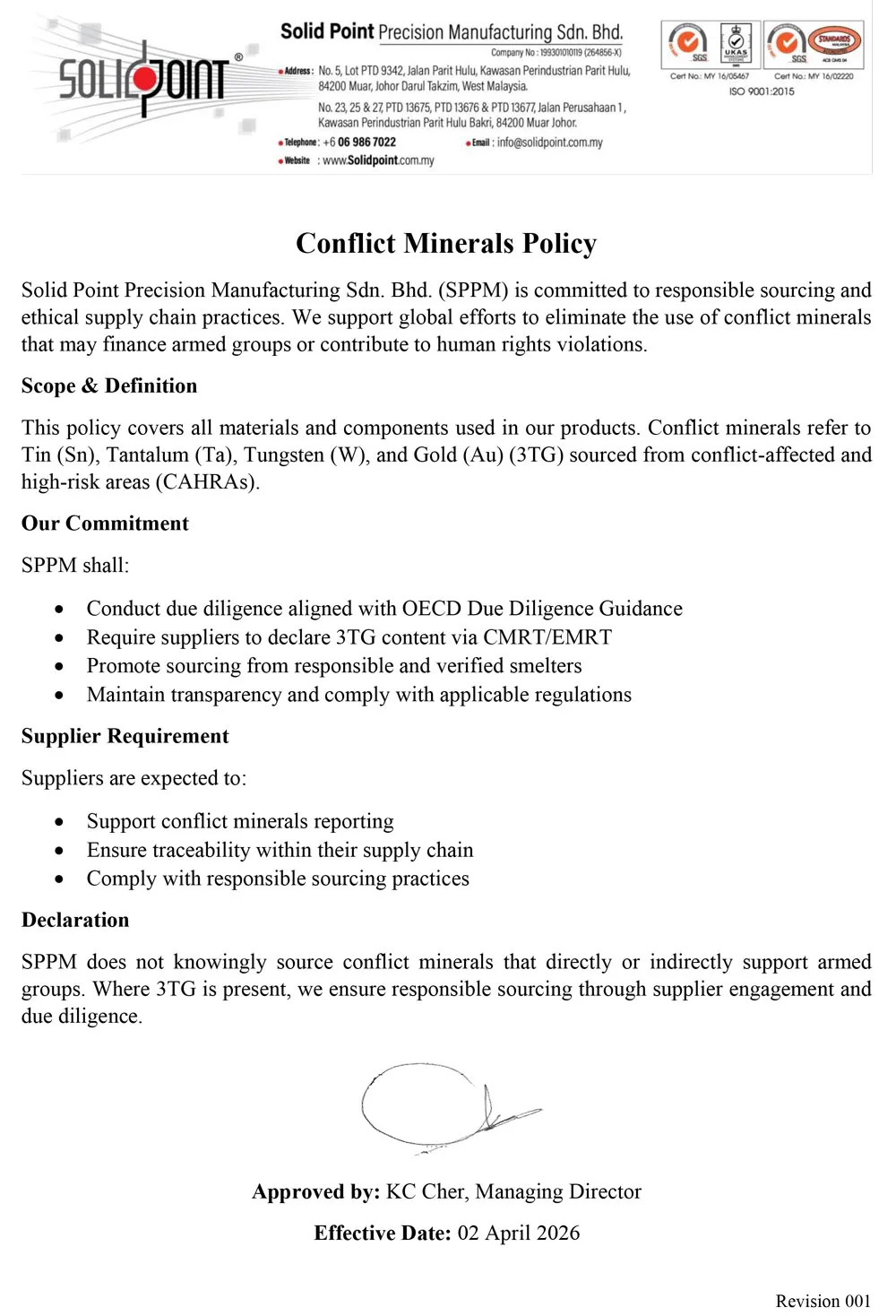 Solid Point Precision Manufacturing Sdn. Bhd. adopts Lean Manufacturing and Kaizen principles to reduce waste, optimize energy use, and enhance process efficiency — all while maintaining superior quality and environmental responsibility.